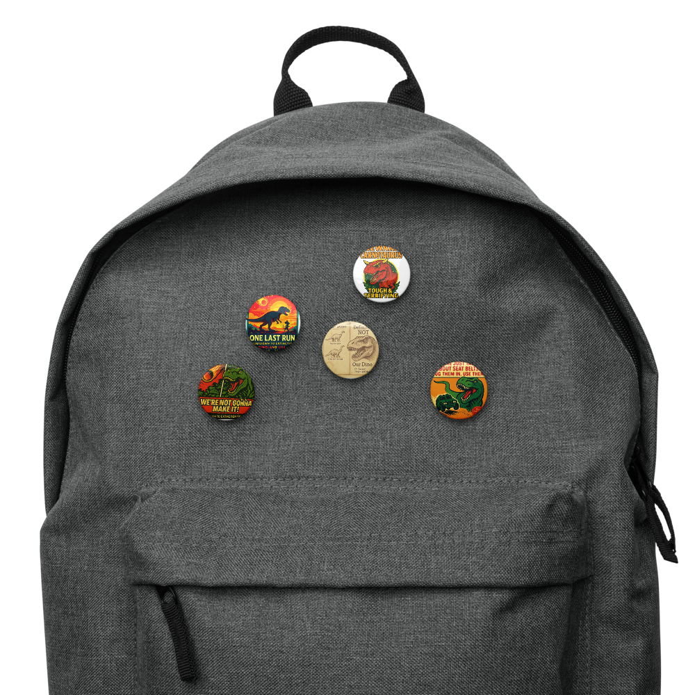 Dinosaur Ride Tribute Button Set: 5 Pack Retro Theme Park Pins | Countdown to Extinction Collectible 1.25"