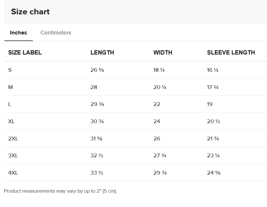 SIZE GUIDE – Comfort Colors 1717 Tee (Length / Width / Sleeve):