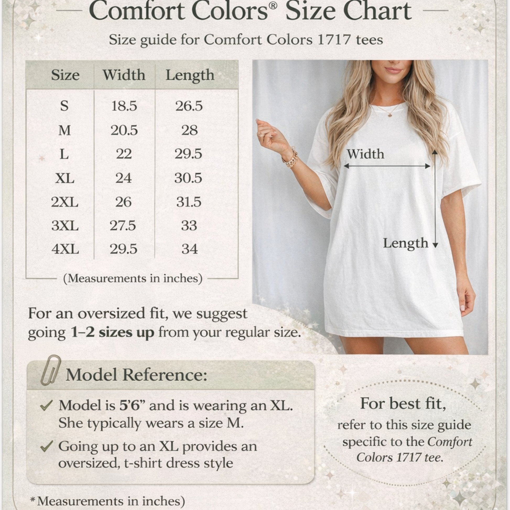 SIZE & FIT – COMFORT COLORS 1717 (INCHES)