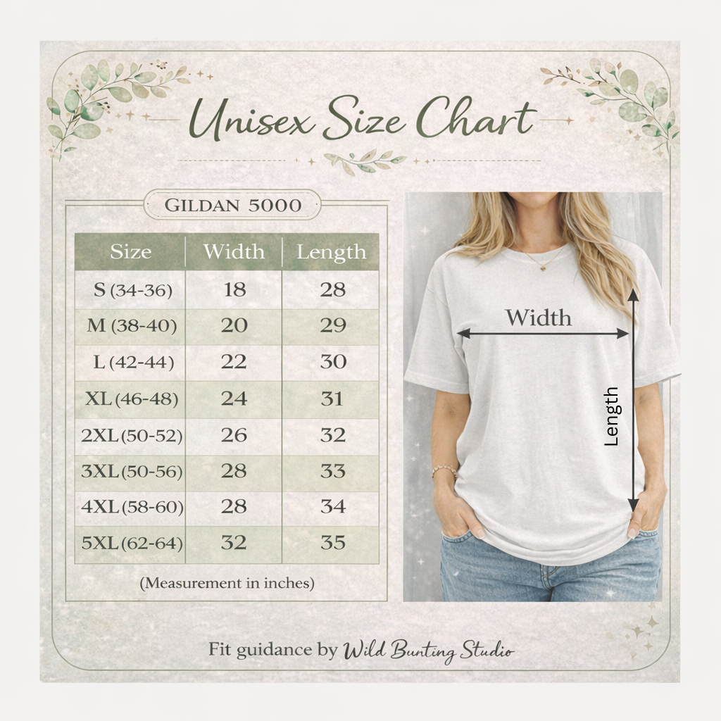 GILDAN 5000 SIZE GUIDE (L/W/S)