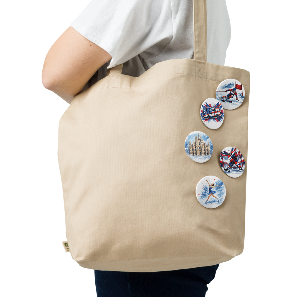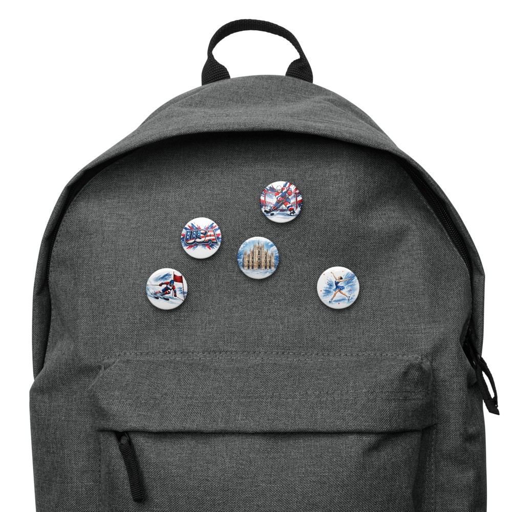 This 5-piece winter sports pin set captures the energy, movement, and excitement of the winter season through original artwork inspired by athletic performance and international travel. Featuring hockey, downhill skiing, figure skating, a bold USA statement pin, and a snow-covered Milan landmark, this collection celebrates the spirit of winter without relying on event branding or official terminology.